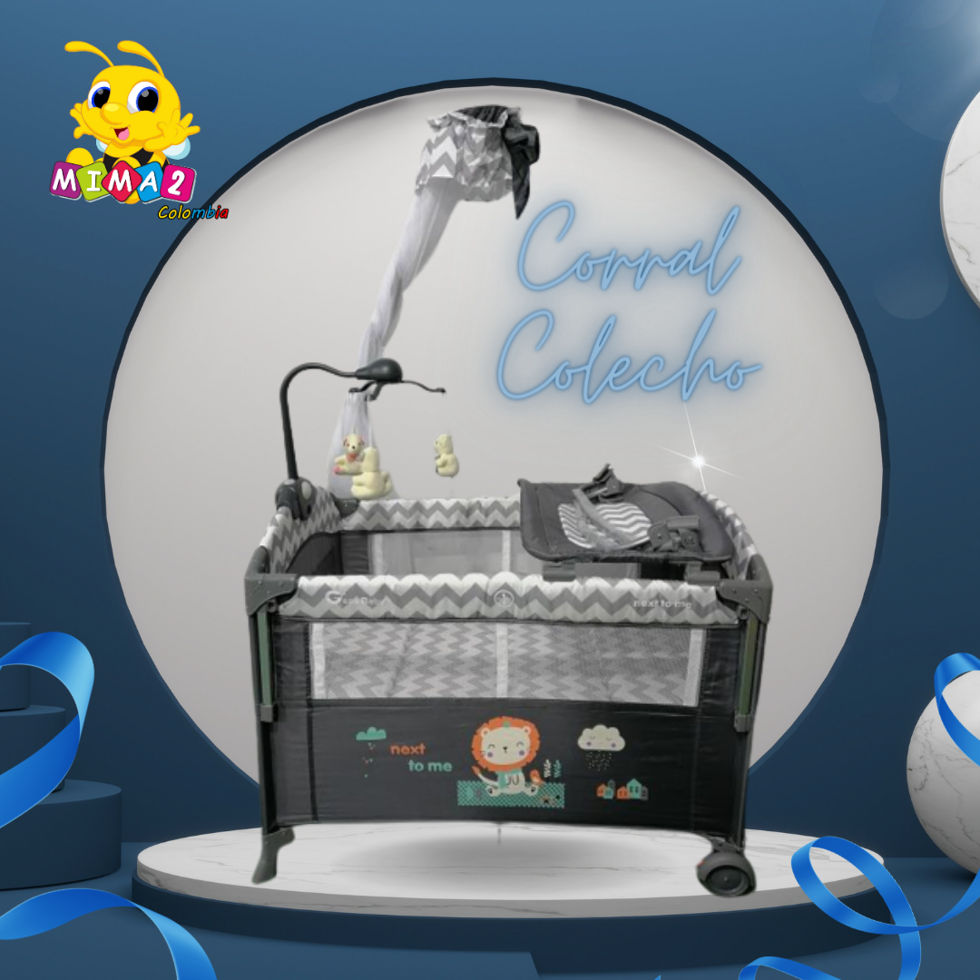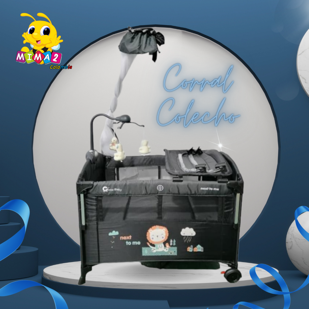 Corral Cuna Colecho Toldillo Tipo Copa cuenta con Cambiador, Arnés de seguridad que permite unir la cuna a la cama de manera segura, 2 niveles de altura, tela en poliéster, para edades de 0 a 3 años